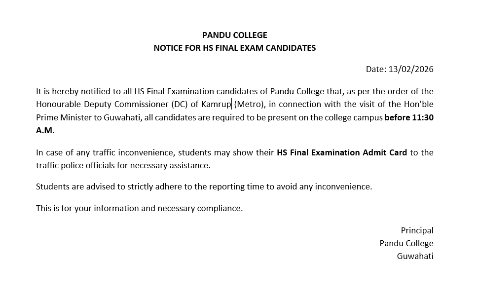 | 5 | All the students of Pandu College are requested to apply for the Minor Research Project. Download the attachment for more details. | 2025-12-27 | View File |